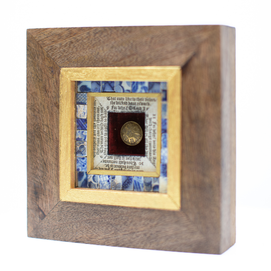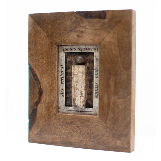 This collection aims to breathe new life into fragments of history. From river-worn pottery and medieval vellum to gilded manuscripts and salvaged timbers, each work is a dialogue between past and present - part reliquary, part reconstruction. These assemblages and paintings transform forgotten remnants into contemporary icons, inviting us to consider what is preserved, what is lost, and what continues to endure.