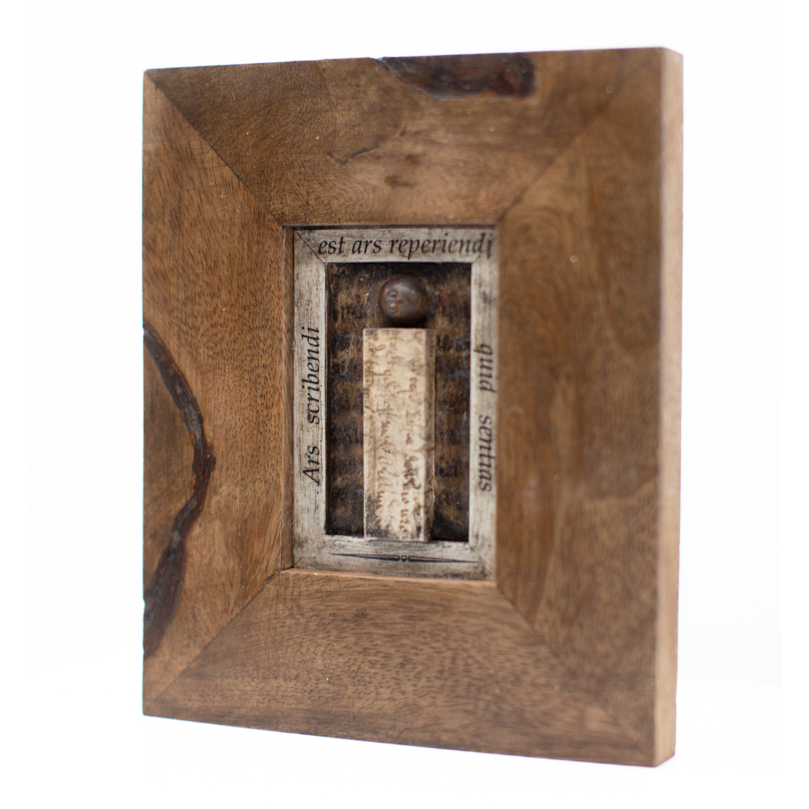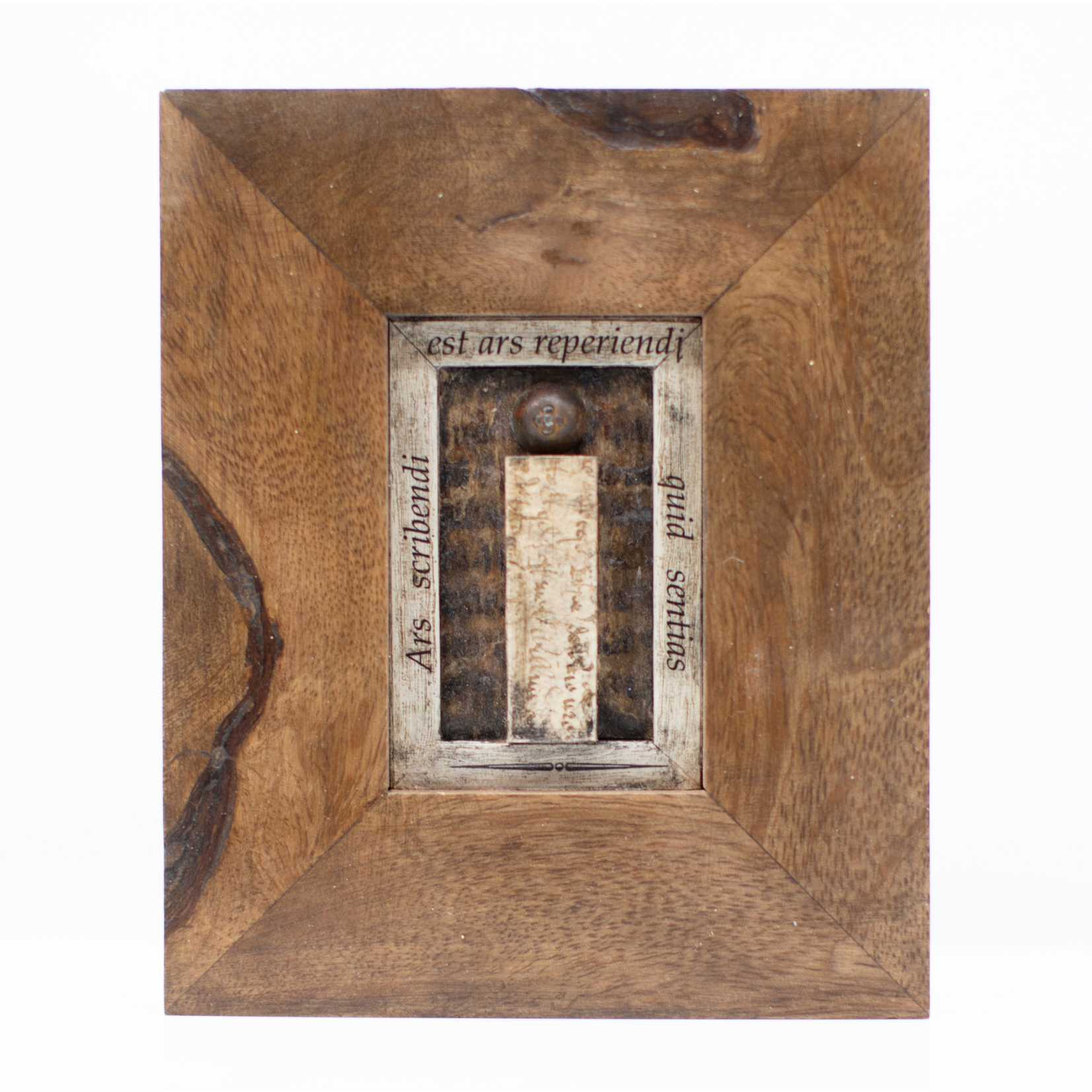 On the inner of the frame the Latin inscription reads: “ars scribendi est ars reperendi quid sentias” (the art of writing is the art of discovering what you feel).