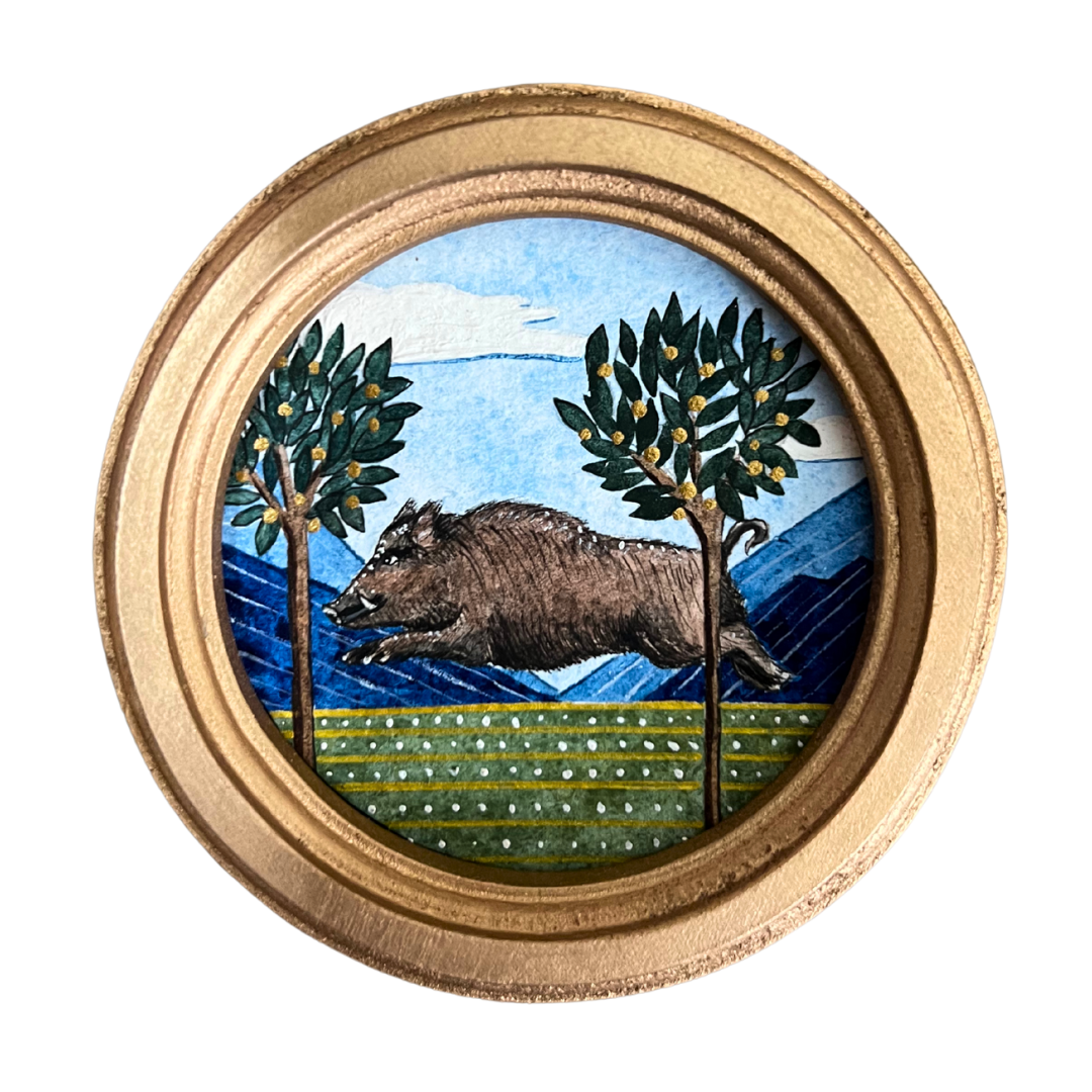 Egg tempera on St Cuthbert's Mill Paper, in a wooden frame hand-burnished with gold wax.